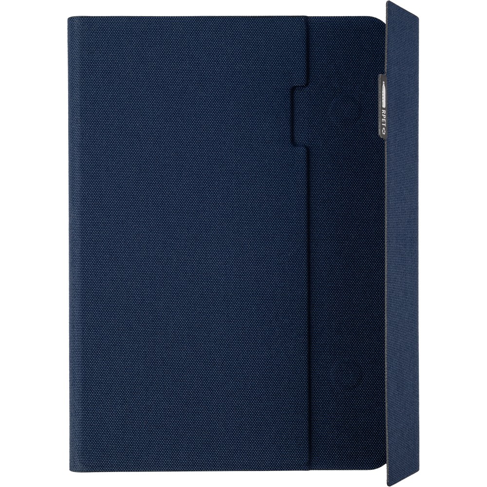 Entdecken Sie die Konferenzmappe A5, der ultimative Imageträger für Ihre Marke. Mit ihren kompakten Maßen von 17,5 x 23,3 x 2,29 cm und einem Gewicht von nur 421 g, bietet sie nicht nur eine stilvolle Präsentation, sondern auch praktische Funktionen wie Fächer für Dokumente, einen Notizblock mit 64 linierten Seiten und einen praktischen Handyhalter. Der hochwertige RPET-Materialmix vereint Nachhaltigkeit mit einem modernen Design in klassischem Schwarz oder Dunkelblau.